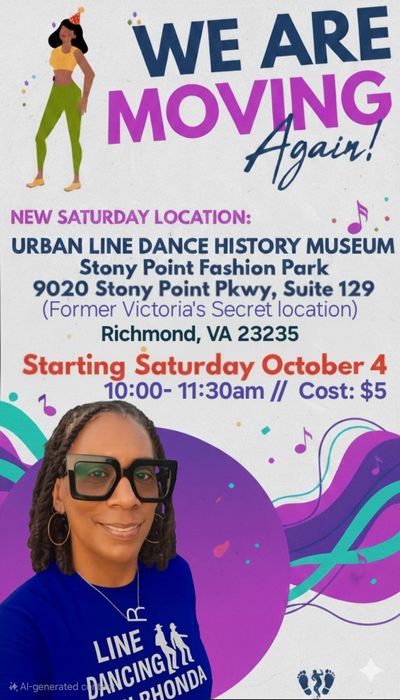 📍 ADDRESS: Urban Line Dance History Museum, 9020 Stony Point Pkwy, Suite 129, Richmond, VA 23235