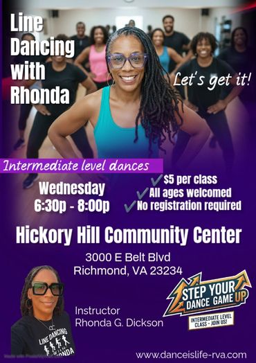 WEDNESDAY - 6:30PM @ HICKORY HILL COMMUNITY CENTER (INTERMEDIATE LEVEL LINE DANCES. $5 - cash or CashApp